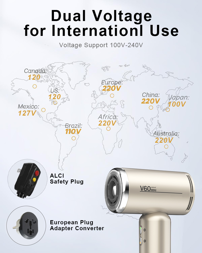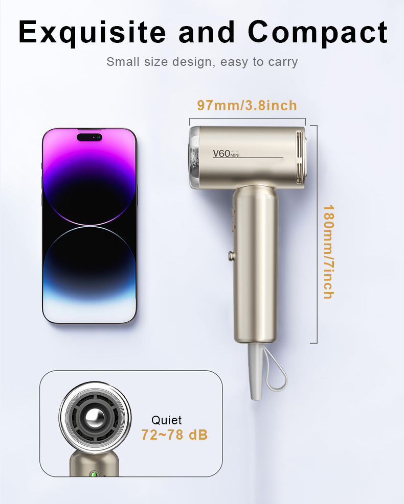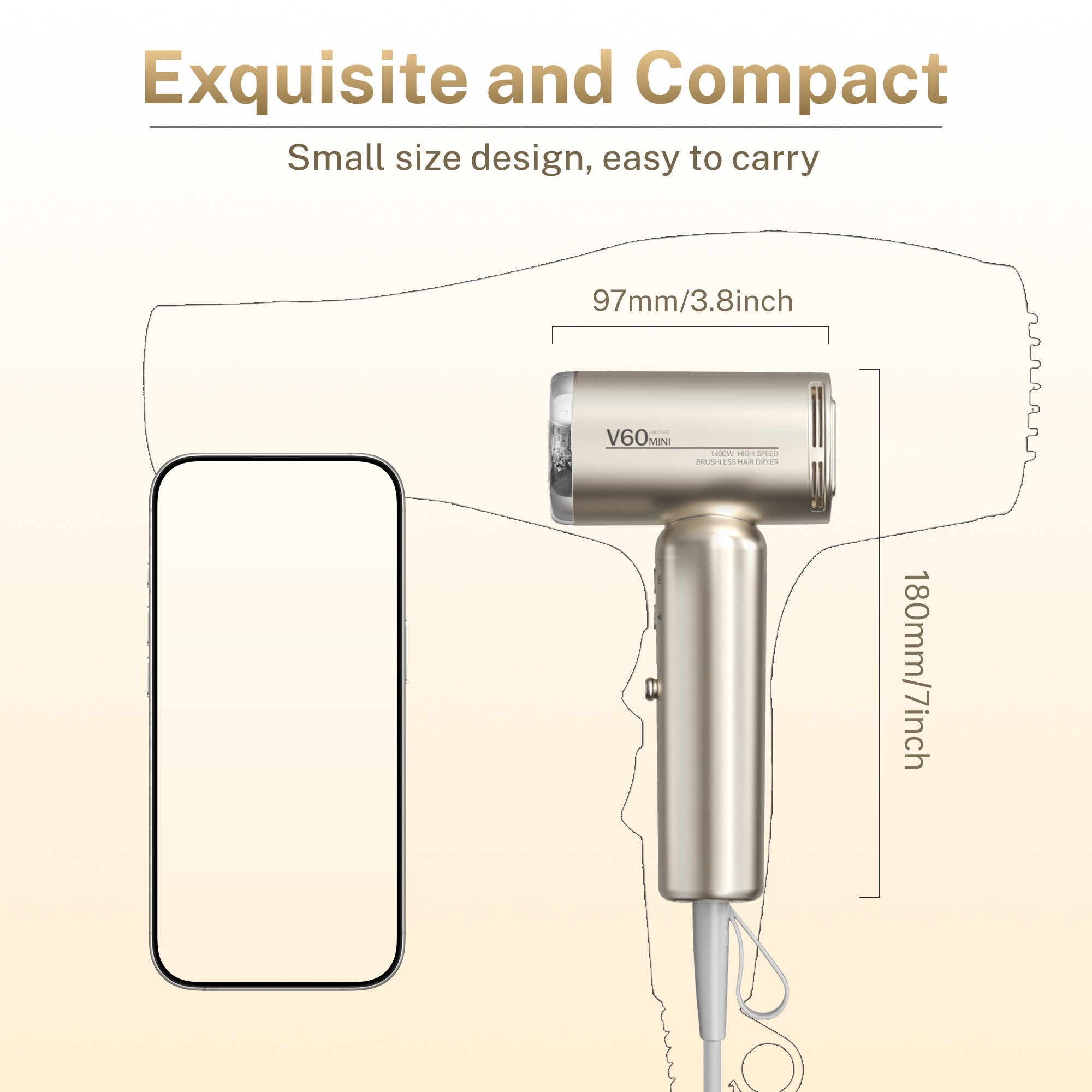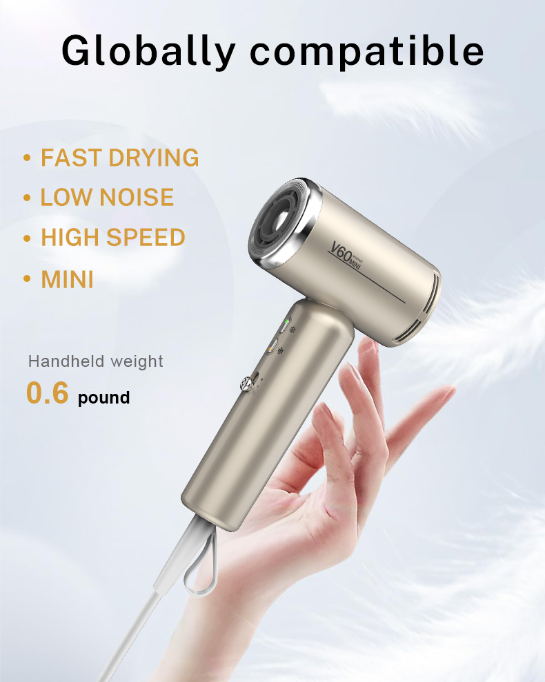 Binwang Luxury Mini High Speed Blow Dryer Portable 1200W Global Voltage Ionic Hair Dryer with Diffuser Gift Set 4 Colors