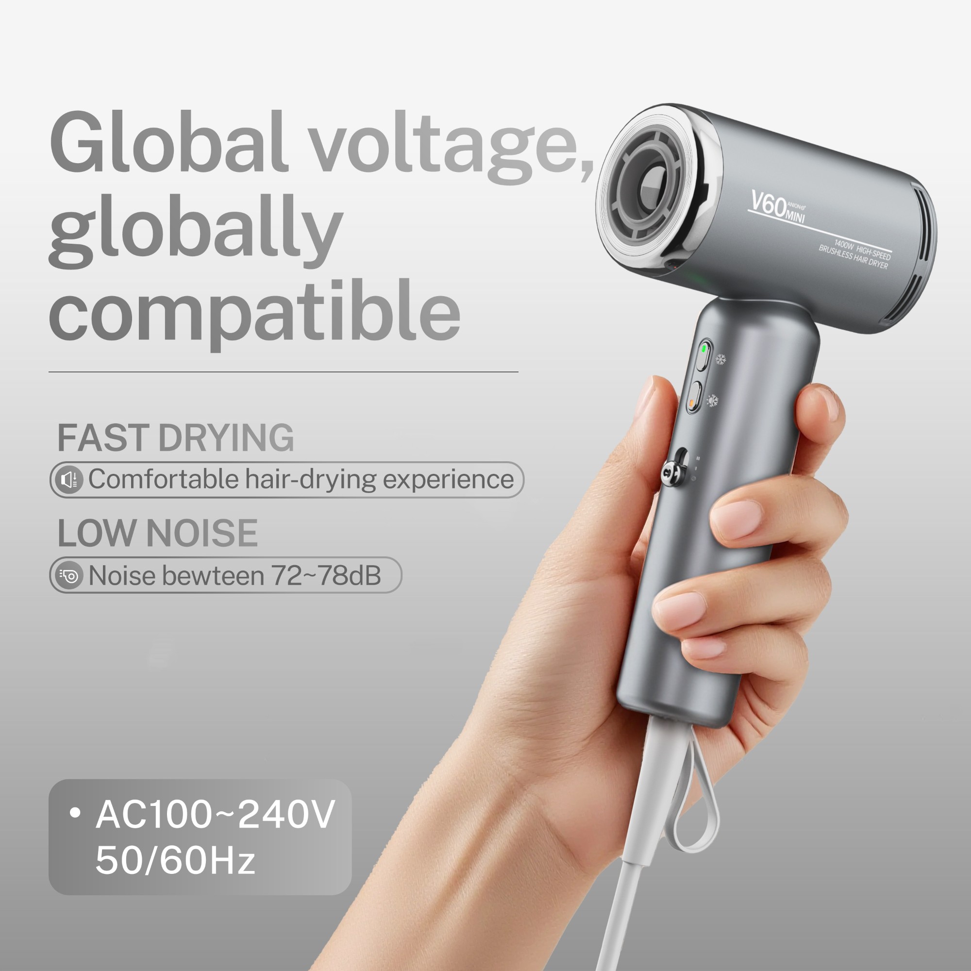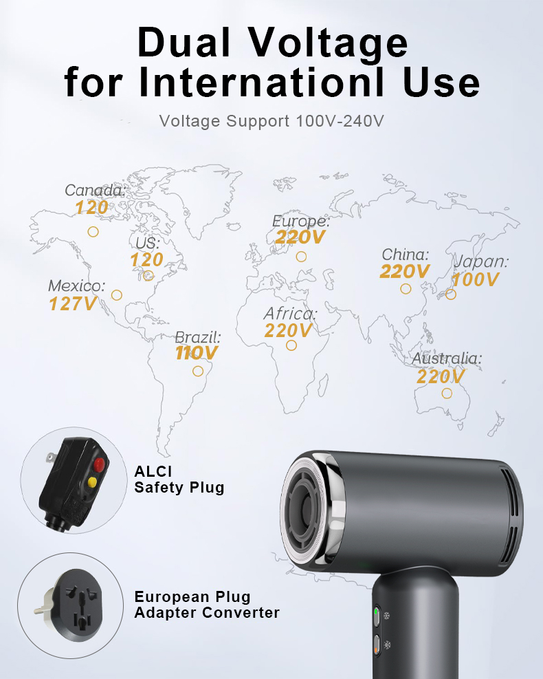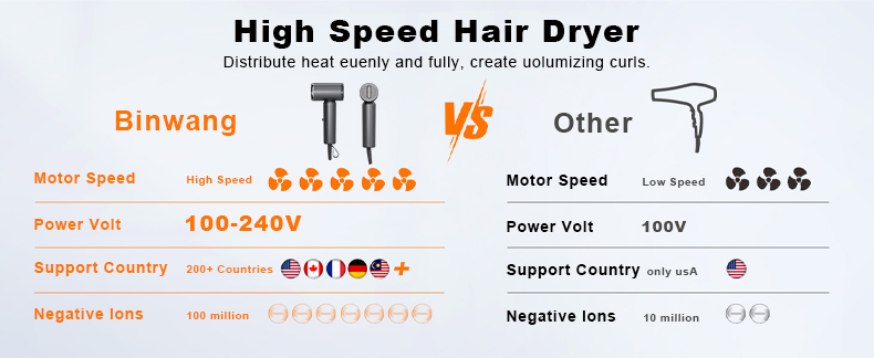 Binwang Professional Brushless Motor Hair Dryer 1200W High Speed Anion Blow Dryer 100V/220V Dual Voltage Hairdryer for Salon