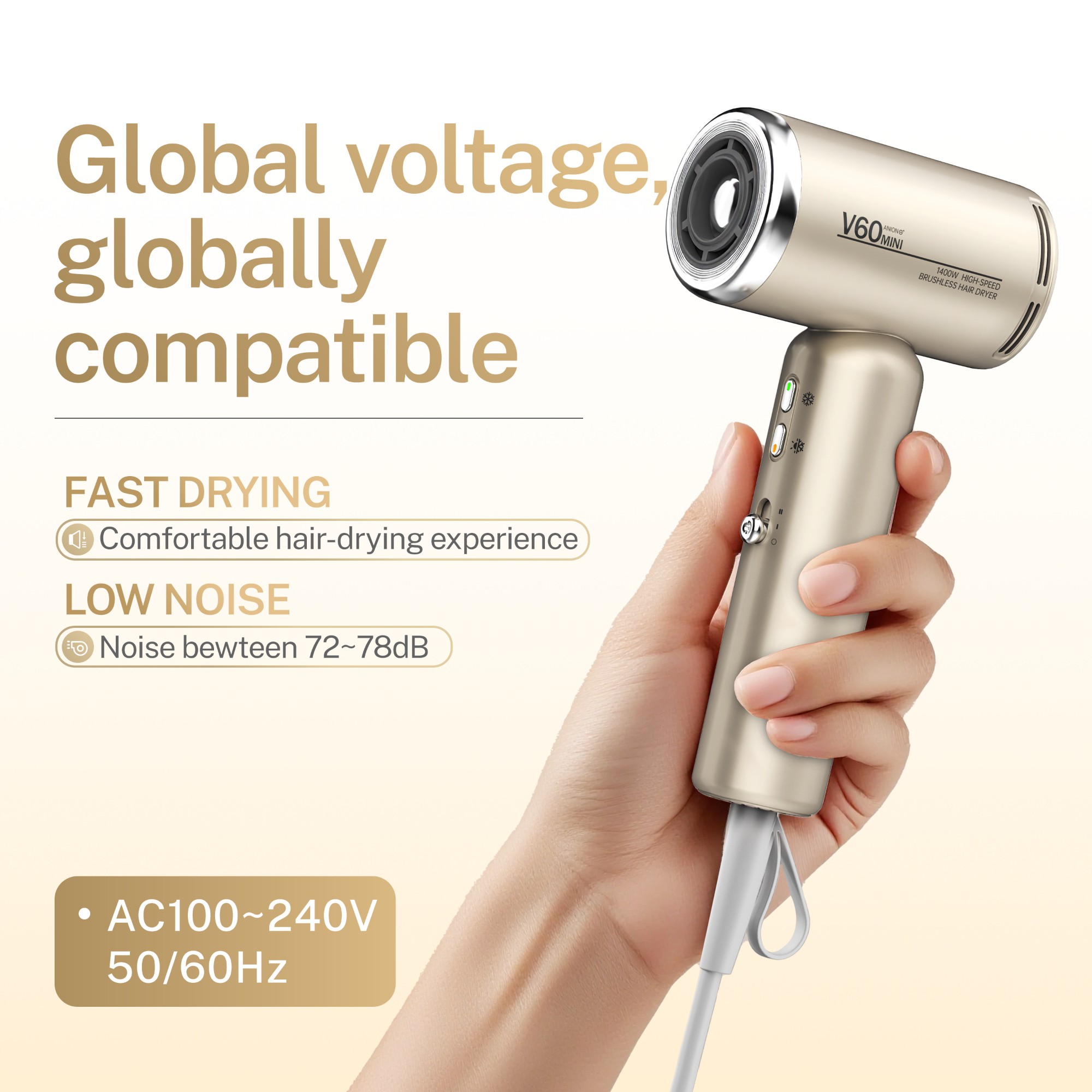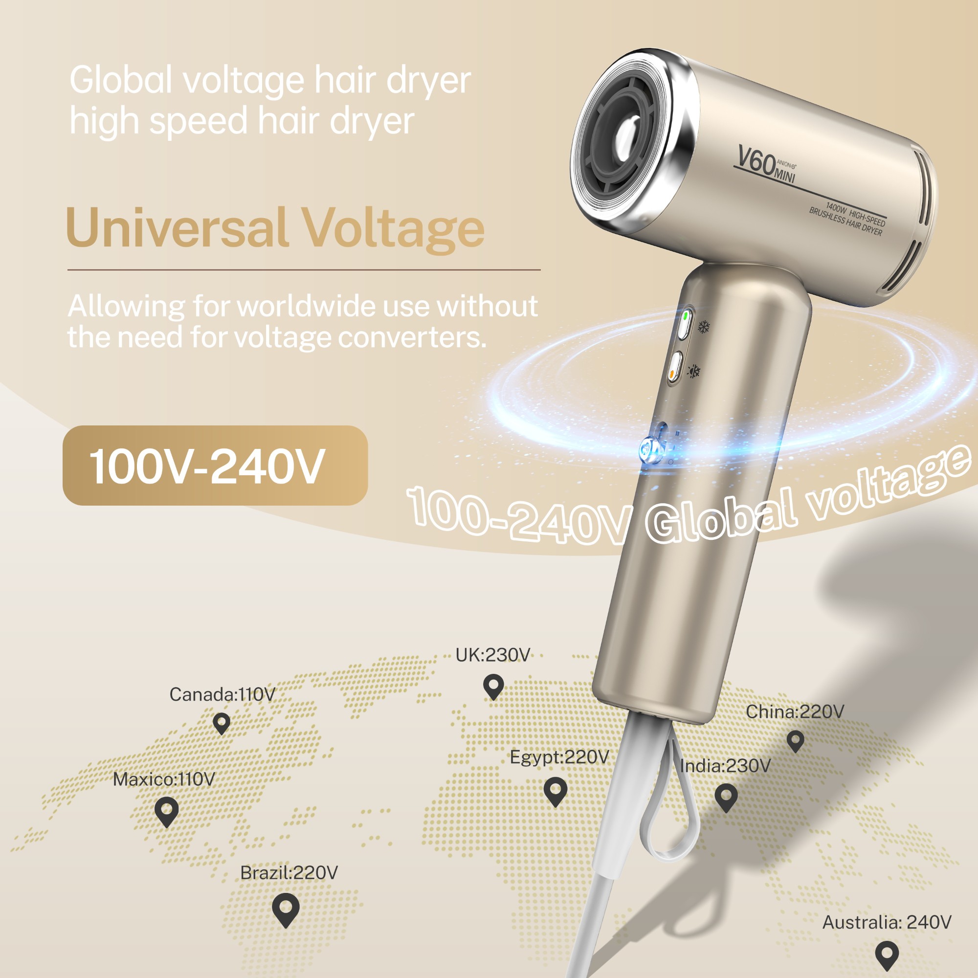 Binwang Luxury Mini High Speed Blow Dryer Portable 1200W Global Voltage Ionic Hair Dryer with Diffuser Gift Set 4 Colors